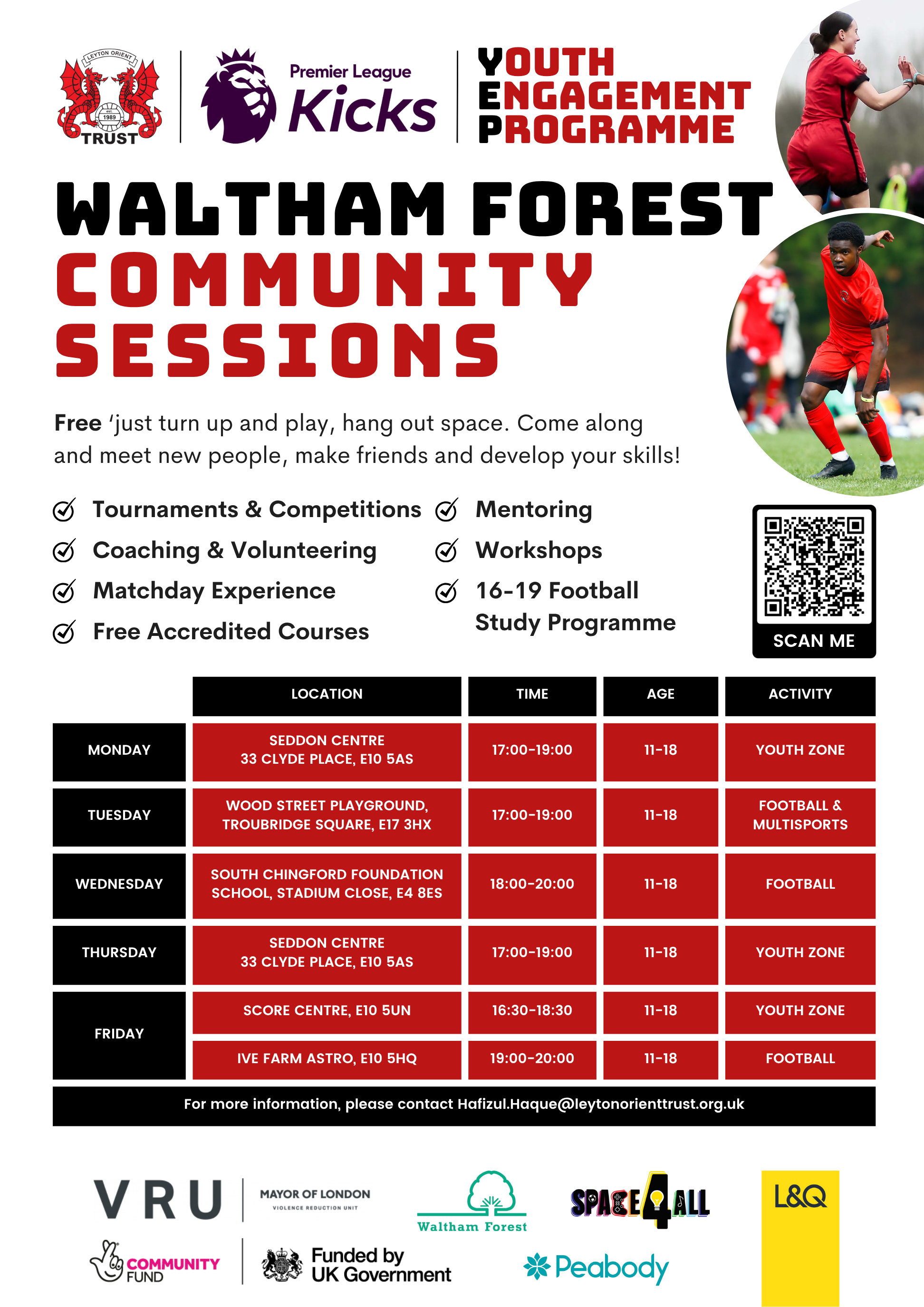 Every Friday - Score Leisure Centre, 2 Coronation Square E10 5UN